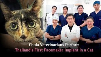 방콕 2025년 11월 24일 / 쭐랄롱꼰 대학교 수의학부 소속 수의사들이 태국 최초로 고양이 심박동기 삽입 수술을 성공적으로 시행했다. 이번 성과는 태국이 고도화된 수의 심장학 분야에서 새로운 단계로 진입했음을 보여주는 의학적 이정표다. 수술은 생리학과의 아누삭 키짜원랏(Anusak Kijtawornrat) 부교수가 이끌었다. 이번 성공으로 태국의 정밀 동물 의료 역량이 성장하고 있음을 입증했다. 환묘인 '펩시(Pepsi)'는 8세의 집고양이로, 심각한 부정맥으로 인해 하루 최대 네 차례 실신을 반복해 왔다. 심박동기 삽입 후 펩시는 완전히 회복했으며, 이후 평소의 활력과 식욕, 장난기 넘치는 성격을 되찾았다. 아누삭 부교수는 펩시의 상태가 심장 각 방 사이에서 전달되는 전기 신호가 차단돼 혈액이 뇌로 제대로 공급되지 못하는 문제에서 비롯됐다고 설명했다. 이러한 유형의 부정맥은 고양이에게 매우 드물며, 전체 고양이 심장병 사례 중 약 0.03%를 차지하고 주로 노령묘에서 발생한다. 펩시의 최종 진단은 표준 심전도(ECG) 검사보다 정확한 24시간 홀터 모니터링(Holter monitoring)을 통해 확정됐다. 고양이의 신체 구조가 매우 작은 탓에 수술에는 뛰어난 정밀성이 요구됐다. 개의 경우 심박동기 전극선(pacemaker lead)을 정맥을 통해 삽입할 수 있지만, 고양이는 심장벽 두께가 약 2밀리미터에 불과해 이러한 방식은 위험하다. 이에 수술팀은 흉강을 열어 전극선을 심장 표면에 직접 부착하고, 복부 근육 아래에 삽입한 작은 발전기(generator)와 연결하는 방식을 선택했다. 약 1시간 동안 진행된 수술에는 심장 전문의, 외과의, 마취과 전문의가 협력하는 다학제 팀이 참여했다. 사용된 심박동기는 사람용 모델과 동일하지만, 고양이용으로 조정됐으며 총비용은 약 5만 9000바트이다. 다만 펩시가 사용한 장치는 기증 받아 멸균 처리된 제품이었다. 수술 이후 펩시는 3개월마다 병원을 방문해 경과 관찰을 받고 있으며, 현재 정상적이고 활발한 일상을 유지하고 있다. 아누삭 부교수는 이번 성과가 태국이 세계적 기준의 복잡한 수술을 시행할 역량을 갖추고 있음을 보여준다고 강조했다. 그는 반려 동물이 실신이나 무기력 증상을 보일 경우 즉시 수의사의 진료를 받을 것을 당부했으며, 젊은 수의사에게도 지속적인 학습과 혁신을 촉구했다: "한때 태국에서는 불가능해 보였던 일이 이제는 헌신, 협력, 지속적 발전을 통해 실현되고 있다."