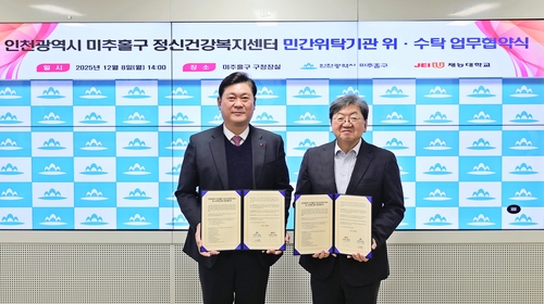 인천 미추홀구(구청장 이영훈)는 지난 8일 구청장실에서 재능대학교 산학 협력단(단장 이주미)과 정신건강복지센터 위탁 운영 협약을 체결했다.