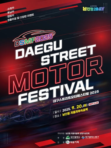 대구의 대표 자동차 골목 축제 '2025 대구스트리트모터페스티벌'이 올해로 14회를 맞아 오는 9월 20일(토), 중구 남산동 자동차 부속골목에서 개최된다.